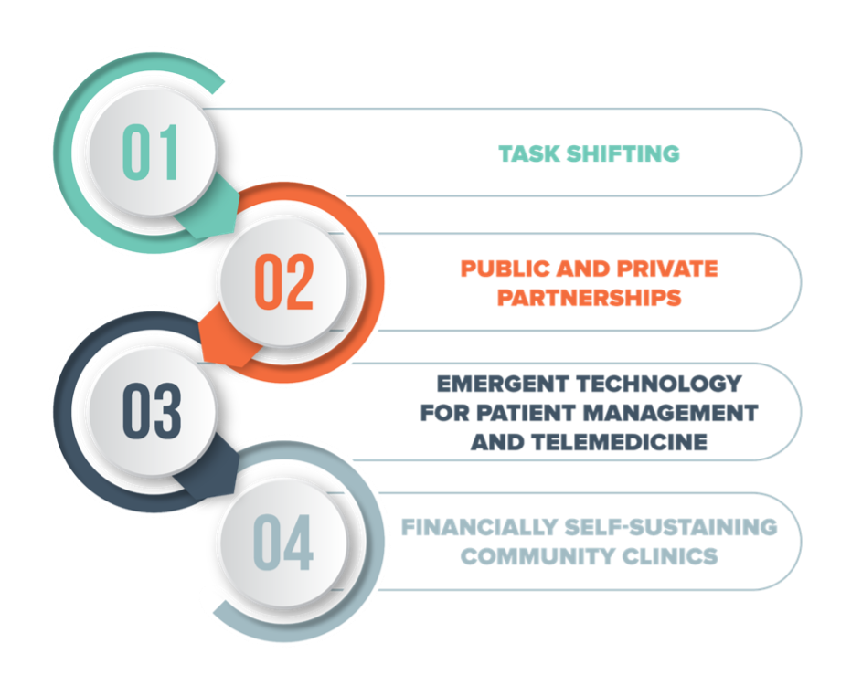 A network of clinics providing high-quality, affordable and accessible care in Africa. This network is an alternative to free public health facilities for millions of Africans, thus improving collective community health, reducing loss of productivity due to health care seeking and illness, improving outcomes for children, and reducing the burden on overstretched state health care facilities.